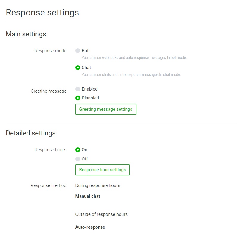 - 離開訊息:離開訊息是在沒有客服人員能回應新諮詢時,才會發送的訊息。