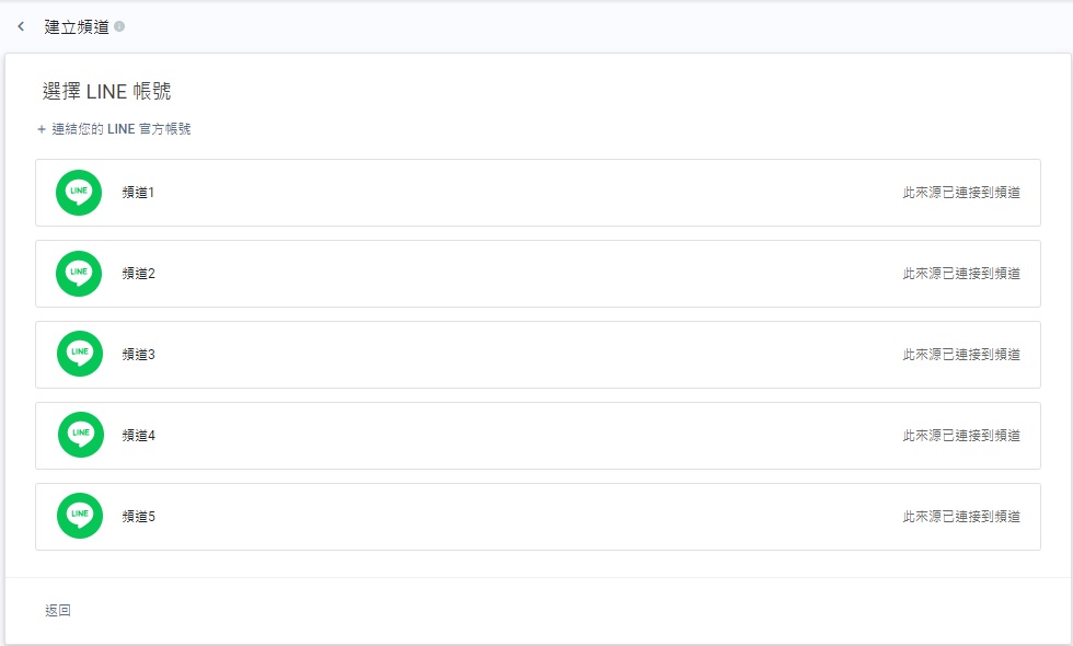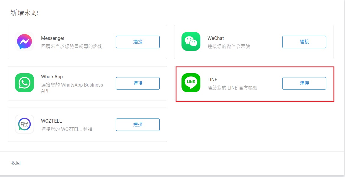 - 在新增來源頁上,點擊LINE旁的連接按鈕。