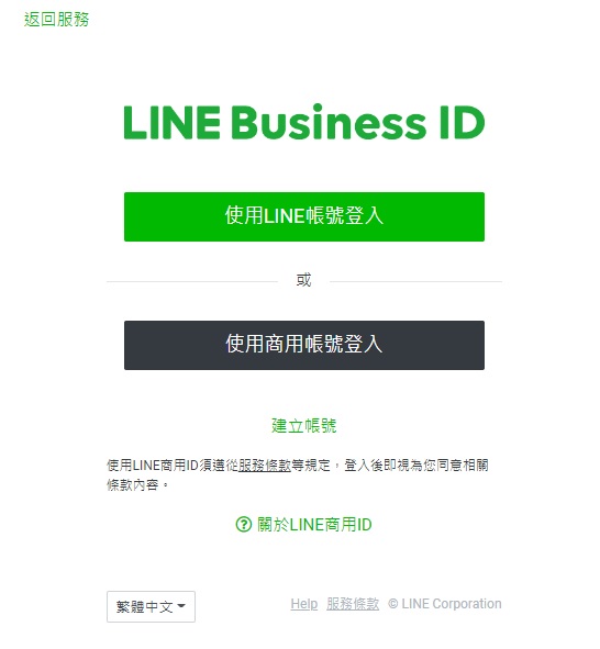 請在LINE官方帳號登錄及註冊頁面登錄或註冊LINE官方帳號。