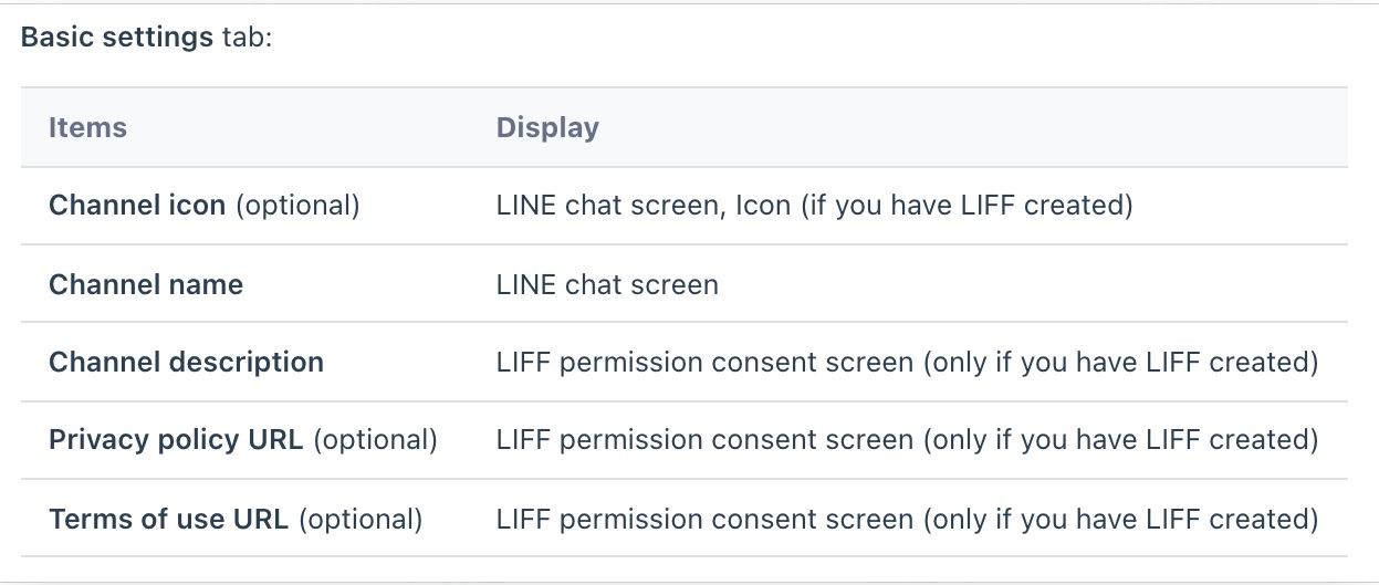 - 以下為顯示給你的用戶,其LINE Messaging API 頻道設定的資料: