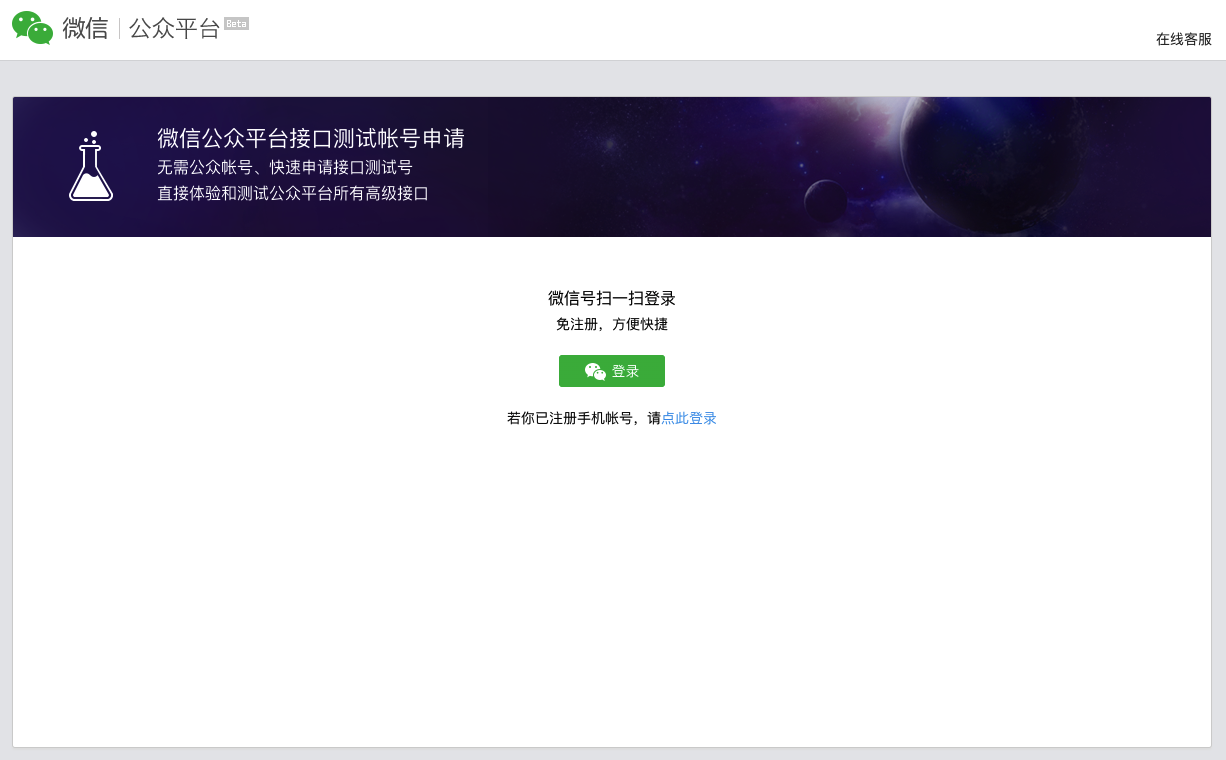 第1步:進入微信公眾號沙箱:https://mp.weixin.qq.com/debug/cgi-bin/sandbox?t=sandbox/login
