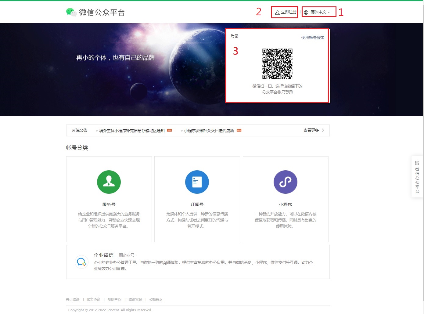 - 打開**微信公眾平台**登錄頁。
