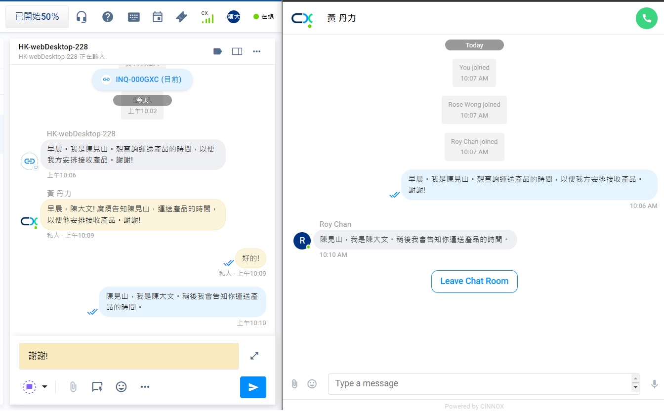 - 邀請另一名員工加入諮詢。參考指南中的**加入員工到聊天室**部份,瞭解如何加入員工到諮詢內。
