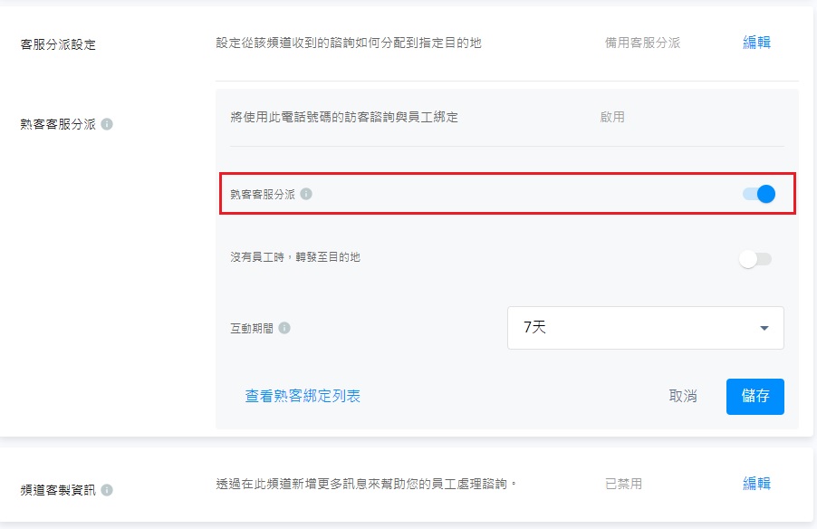 啟用後,CINNOX 會將訪客和第一次處理其諮詢員工綁定。