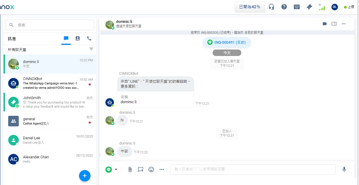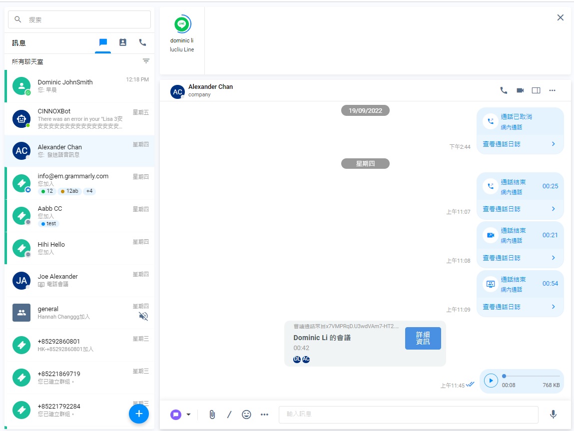 你可以在CINNOX中答覆和處理諮詢訊息。CINNOX能夠切換通話和聊天功能,取決於你的組織需要甚麼的支援和回覆。你亦可以切換不同聊天室,回覆群組聊天的訊息。