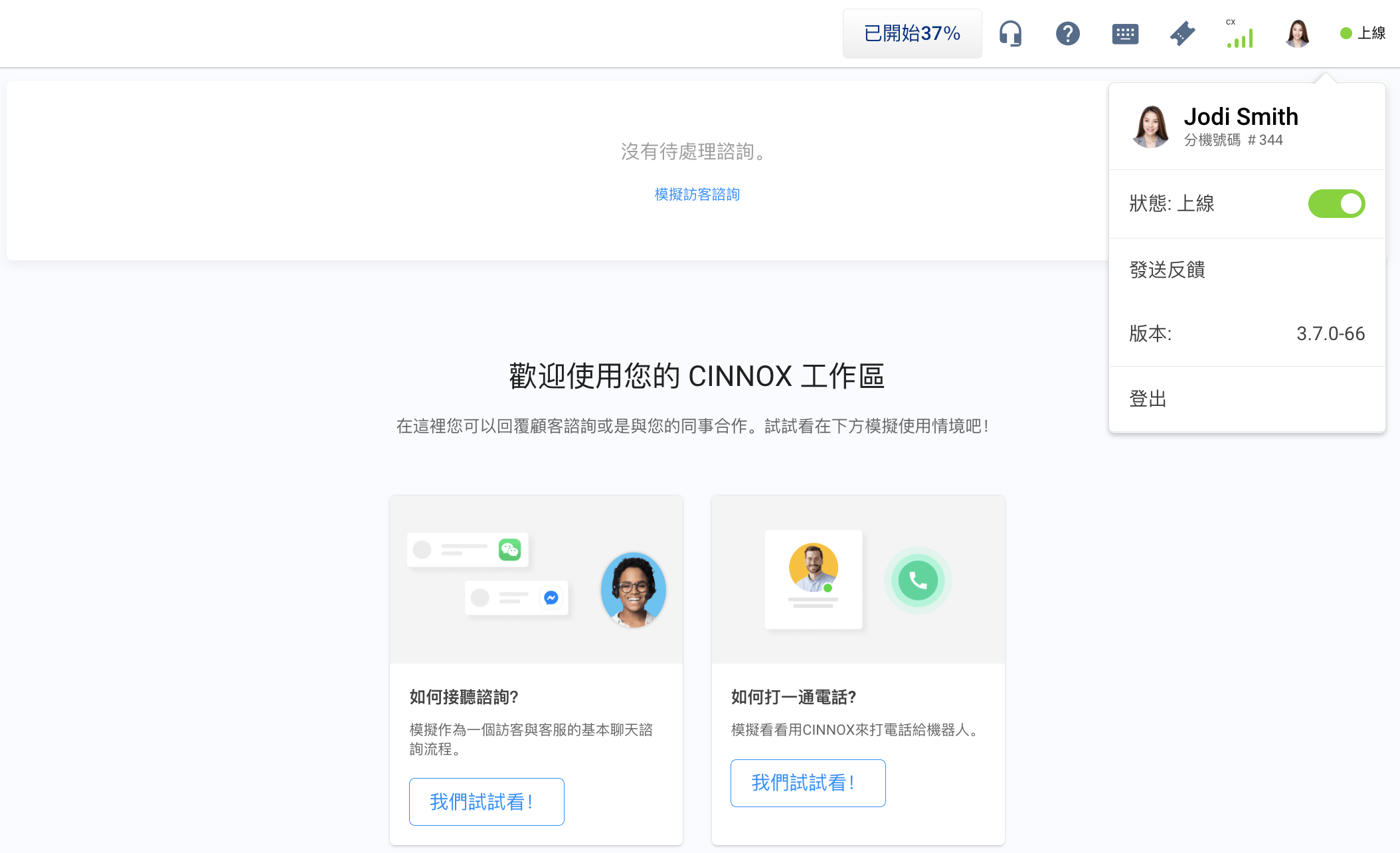 上線:員工已登入CINNOX控制面板、應用程式,或同時登入兩者,準備接收新諮詢。