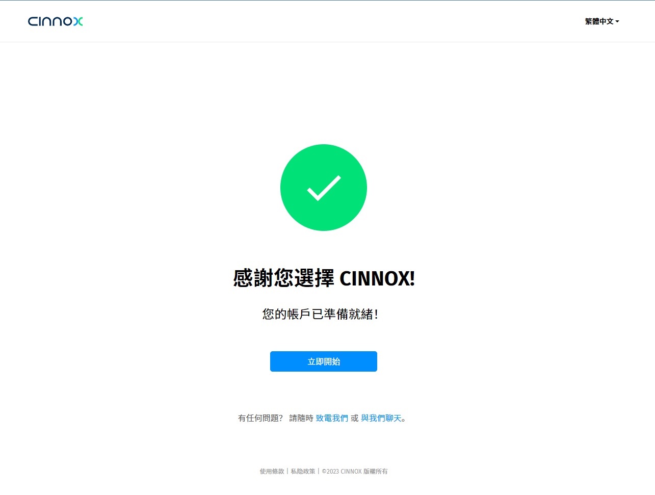 - 如果你還未收到啟動郵件,請點擊 CINNOX控制面板上的 發送驗證郵件 ,以收取啟動郵件。