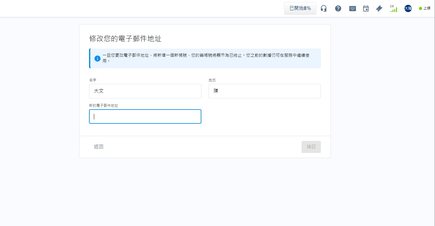 - 如果想更改你的電子郵件地址,請點擊更改電子信箱,重新輸入你的首選電郵地址。
