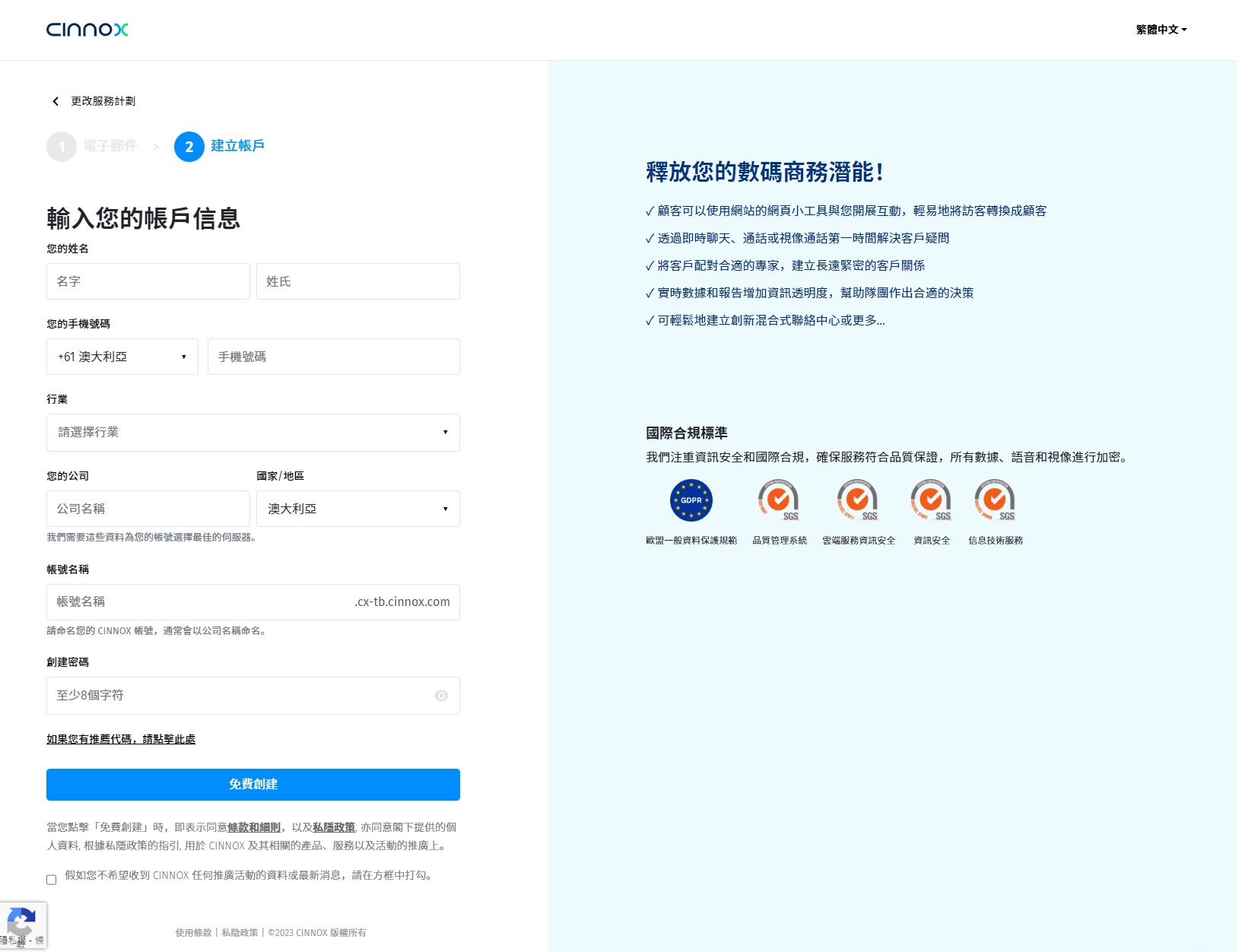 點擊免費創建,表示你同意條款和條件和私隱條例。根據私隱條例,你還同意CINNOX使用閣下在此提供的個人資料,進行直接營銷,包括CINNOX及其產品、服務和活動。