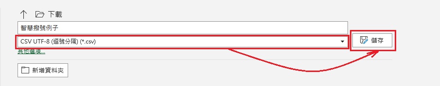 以CSV URF-8 (逗號分隔) (*.csv) 格式儲存檔案。
