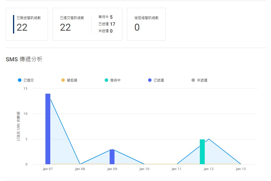 下圖是按小時/日期篩選後,顯示已發送簡訊的總數分項。
