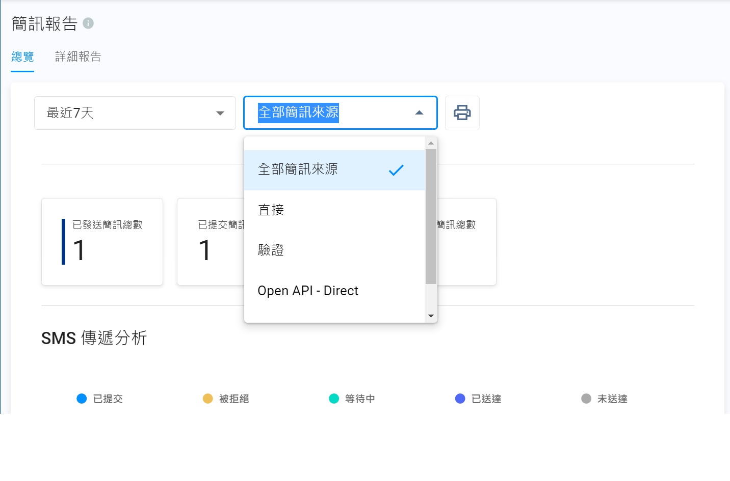 如要列印簡訊報告,包括總覽部份的圖表和數據,可點擊頁面中央上方的列印圖標。
