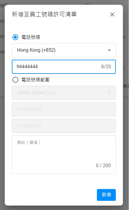 員工號碼許可清單,容許你將單獨一個電話號碼,或一系列電話號碼,作為條目,加到清單內。