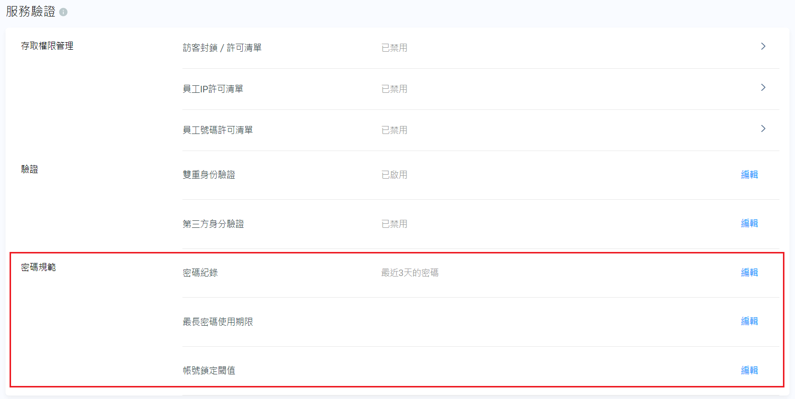啟用員工密碼規範
