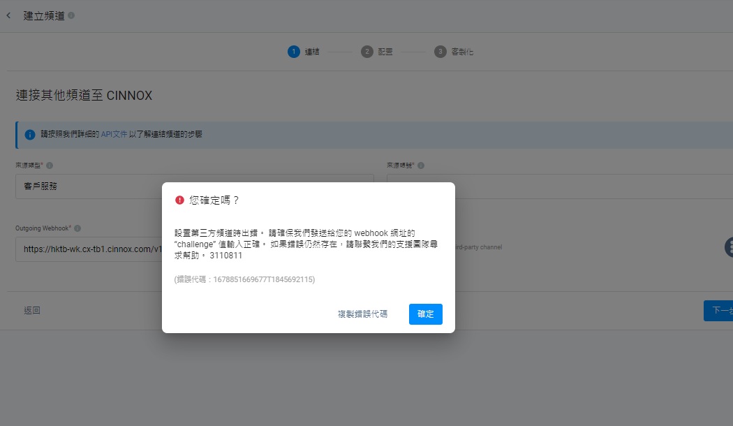 當測試連接失敗時,確保正確輸入我們發送予你的Challege value。