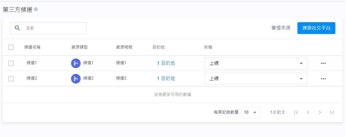 - 在社交平台頁內,點擊頁面右上角的管理來源按鈕。