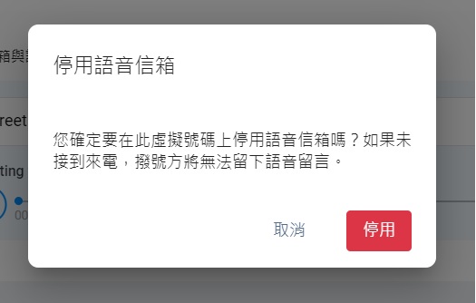 - 關掉語音信箱後,會彈出式視窗,要求確認操作。