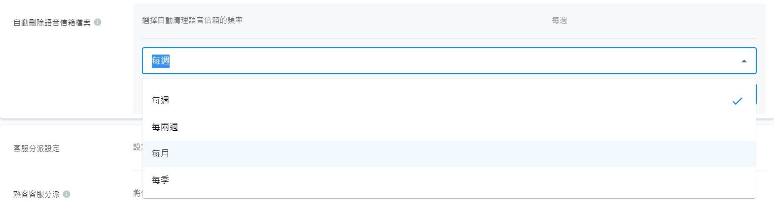 - 在自動語音信箱檔案部份,選擇刪除語音信箱檔案的頻率。頻率可以是以下任何一種: