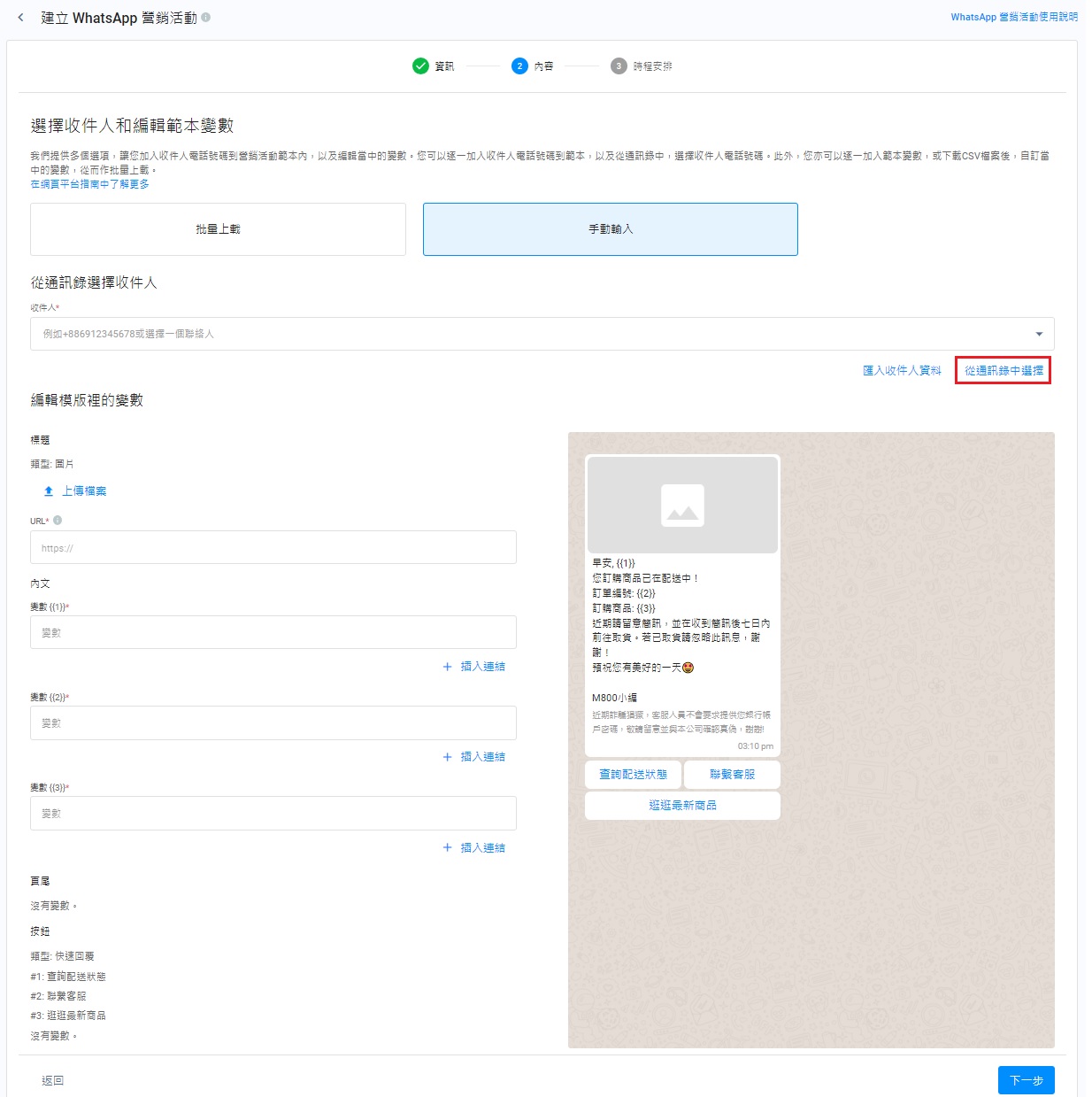 - 點擊下一步後,你已經進入了選擇收件人和編輯範本變數頁內。