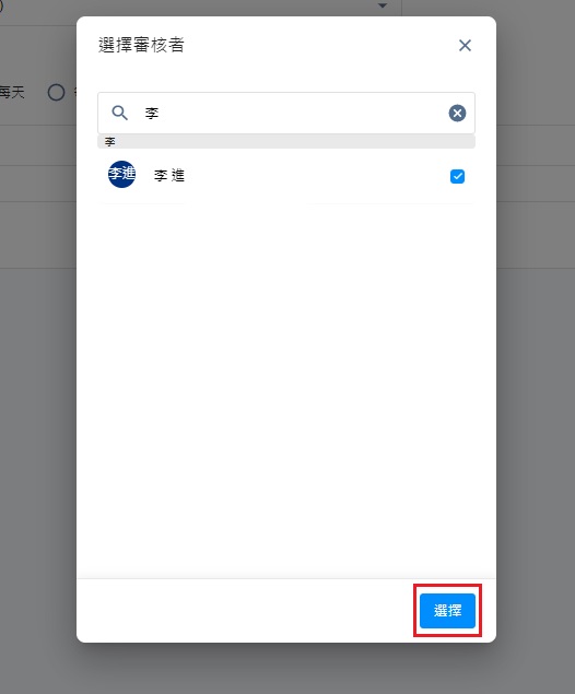 - 完成時程安排後,點擊送出審核。在彈出式視窗,選擇員工作審核者。