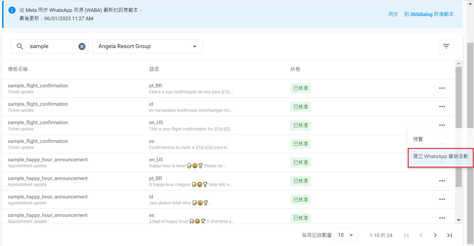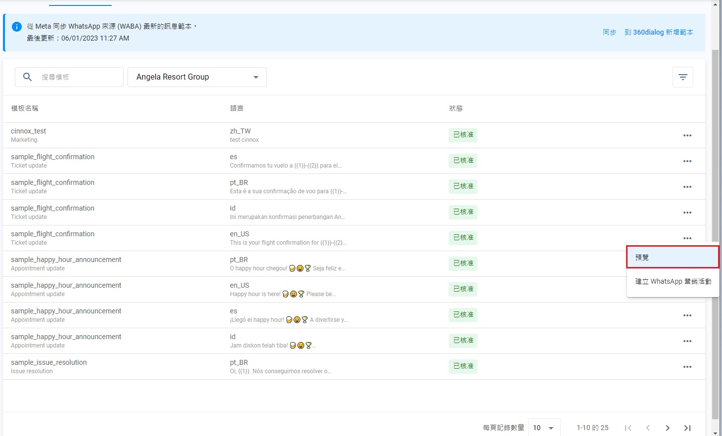 如要預覽WhatsApp模板: