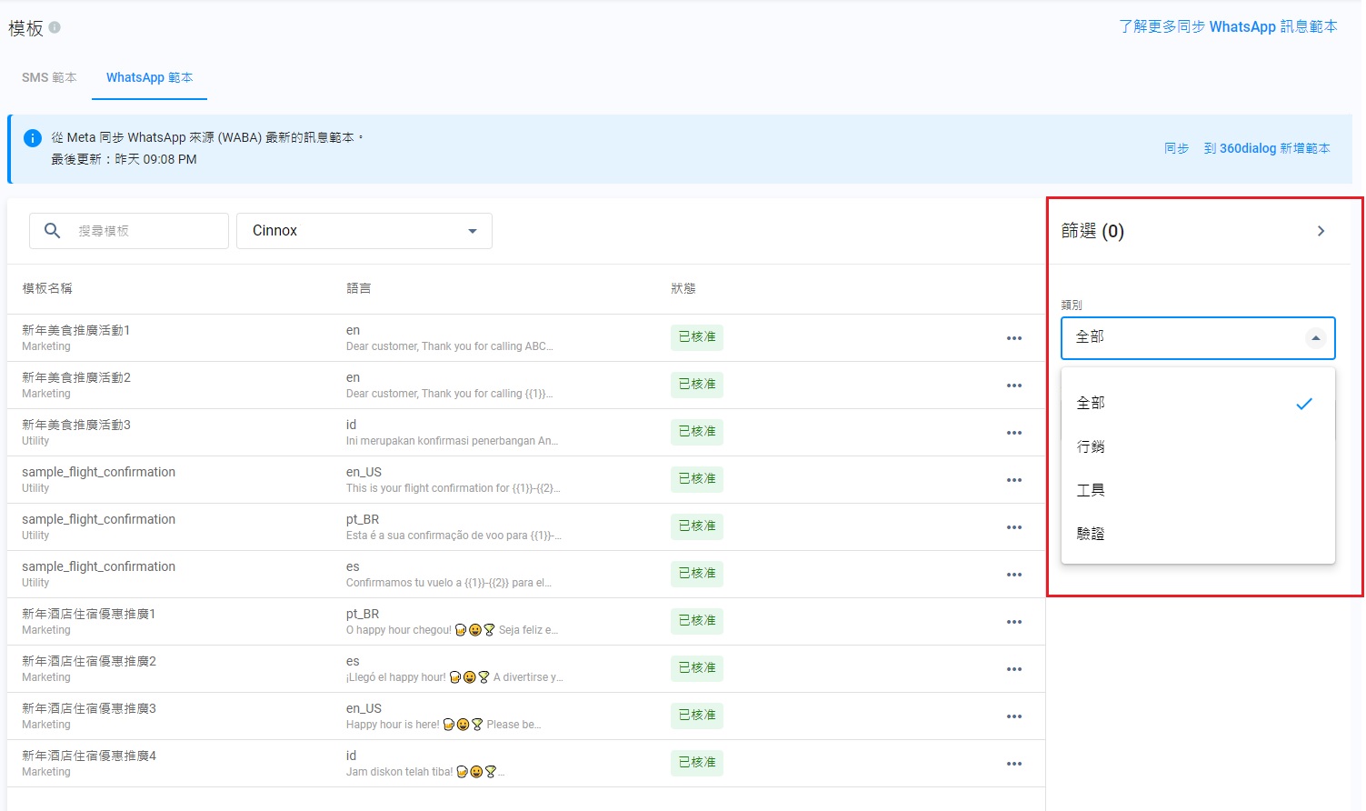 在這版面,你可以同步你的WhatsApp範本到CINNOX,以及為客戶和訪客,建立第一個WhatsApp營銷活動。