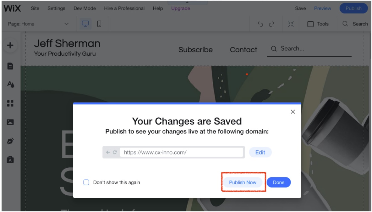 點擊Publish Now後,螢幕會顯示,你的網頁已經上線。
