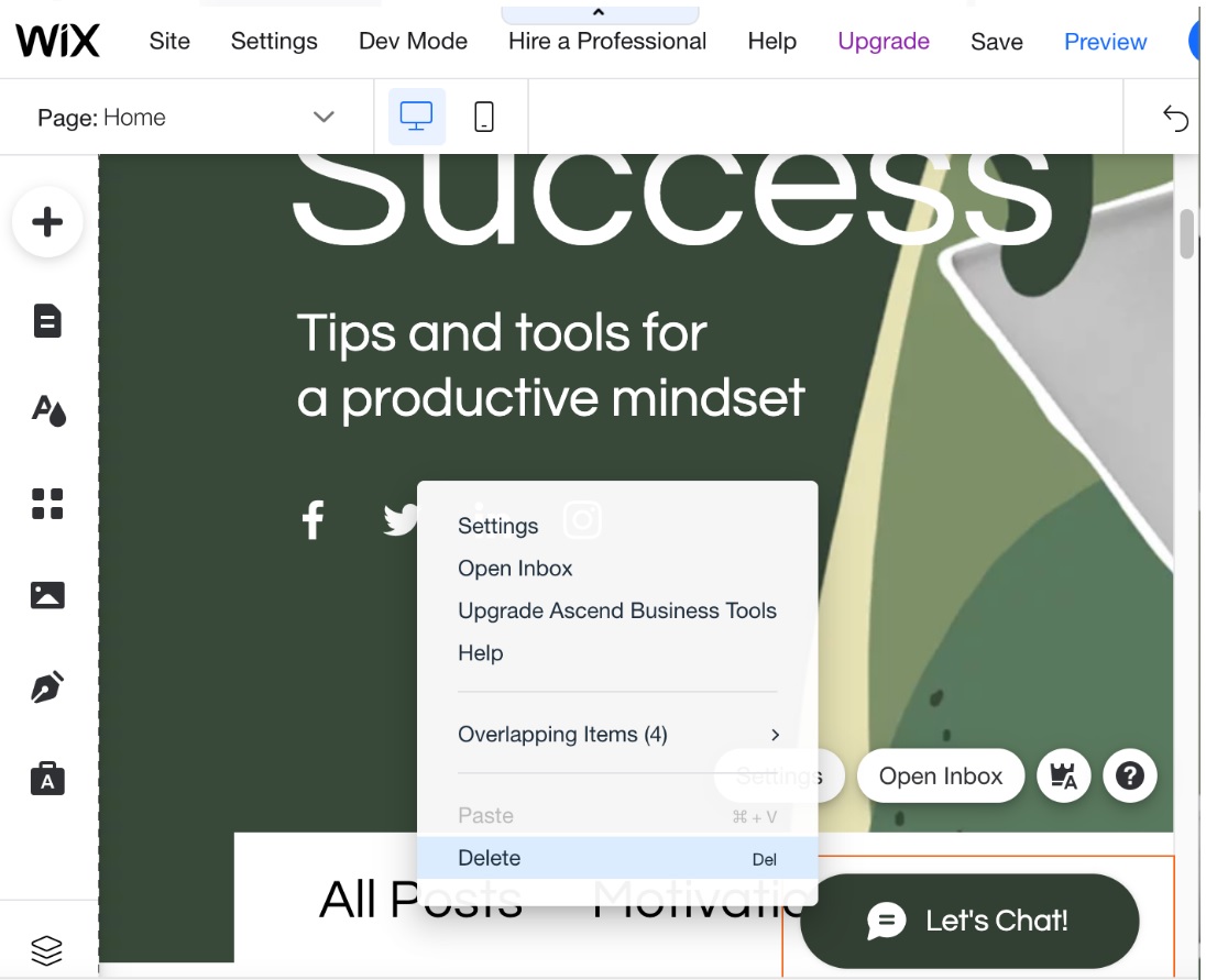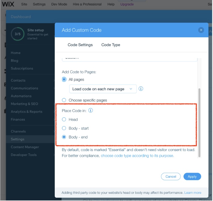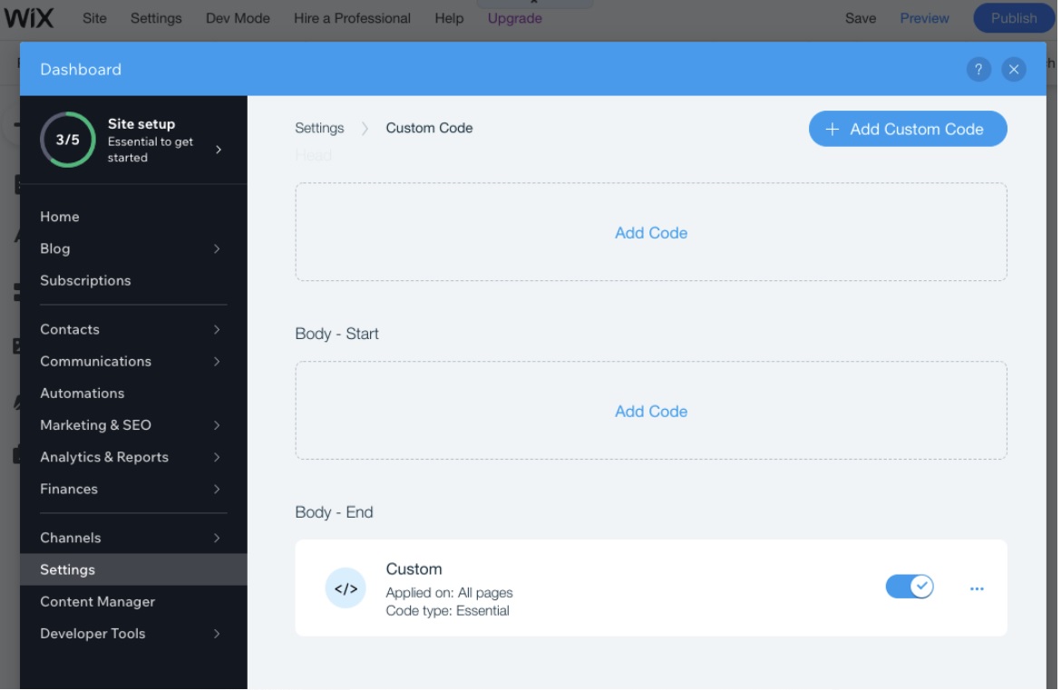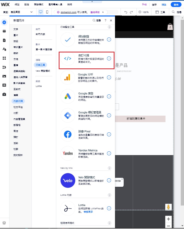 如要透過自定碼(Custom Code)在WIX加入實時聊天功能的話,需要有已連接網域,並訂閱較高級的計劃。如要了解更多這方面的資料,請參閱**Wix 幫助中心**。