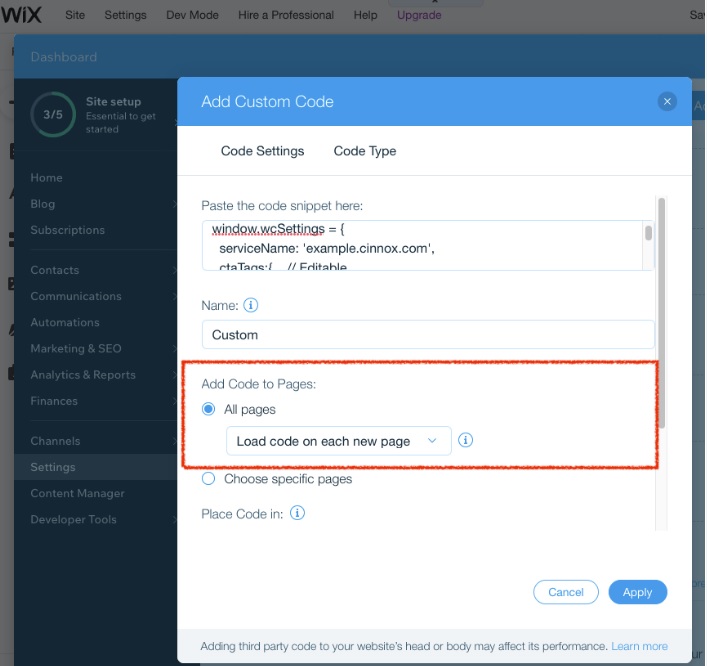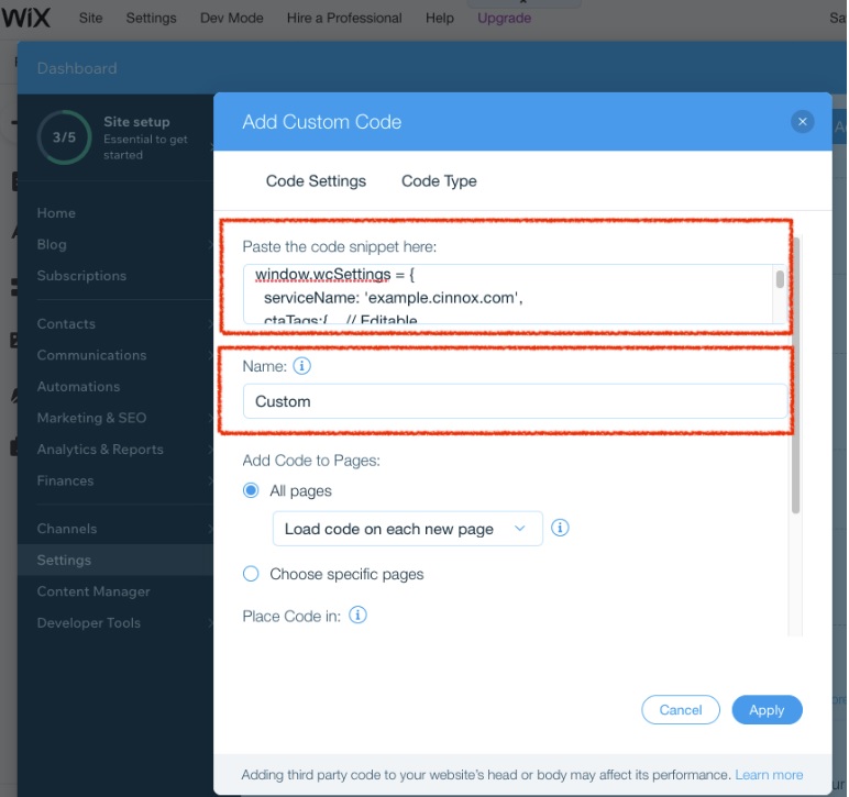 以下是在Wix網站,安裝CINNOX懸浮圖標(Web Widget)時要遵循的步驟: