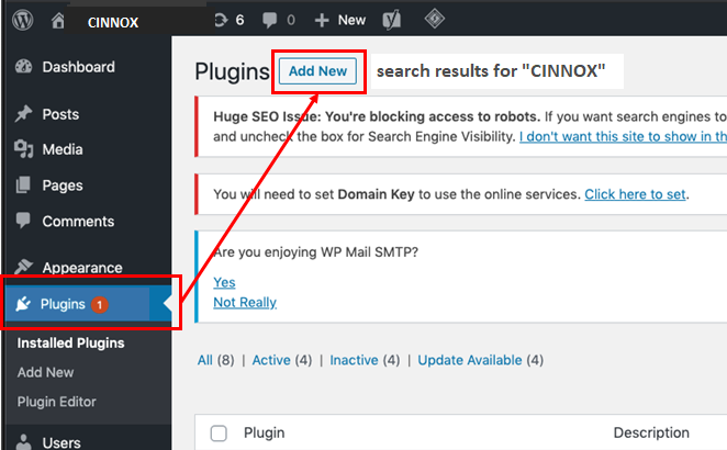 在你的WordPress網站上安裝CINNOX外掛程式: